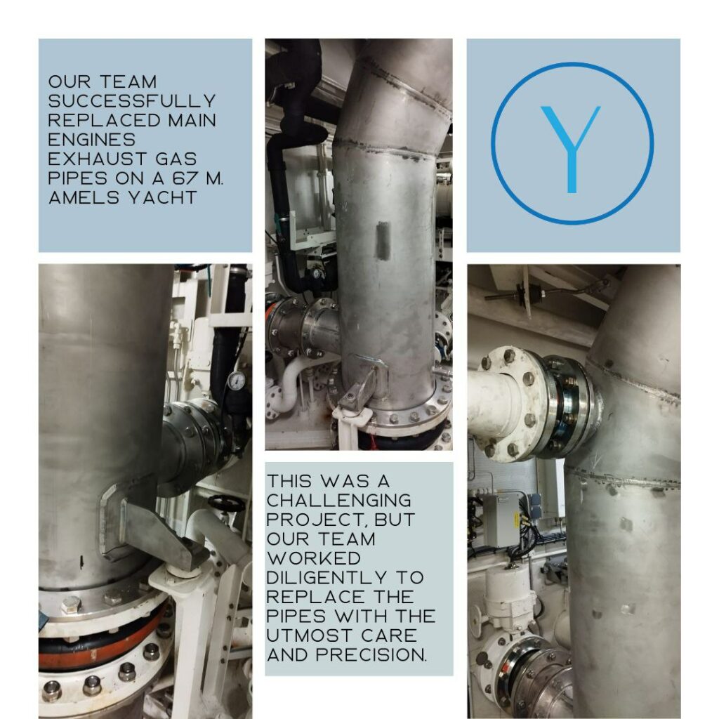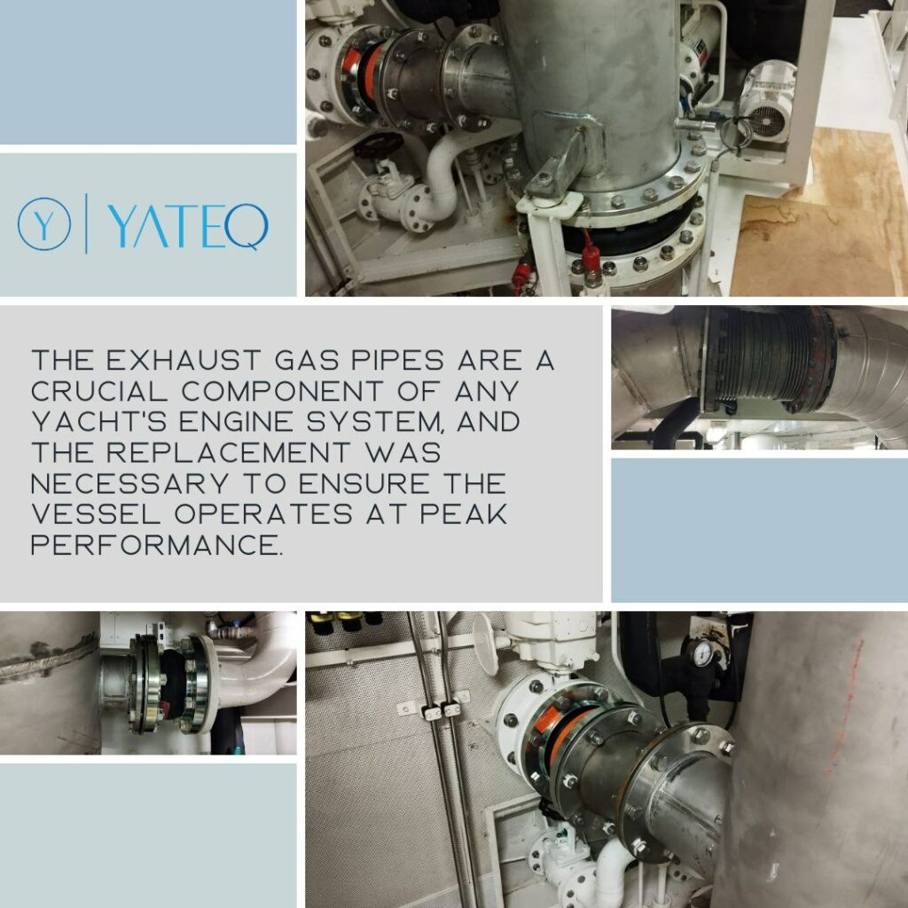The exhaust gas pipes are a crucial component of any yacht’s engine system, and the replacement was necessary to ensure the vessel operates at peak performance. Our team used state-of-the-art techniques and equipment to complete the installation, and we are confident that the yacht’s owners and crew will be thrilled with the results.